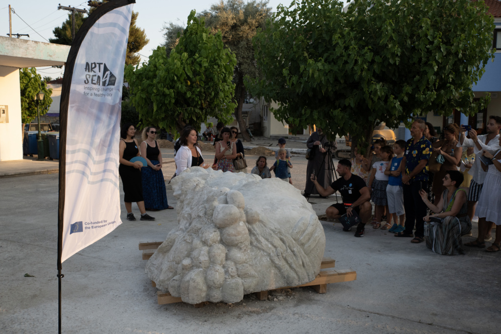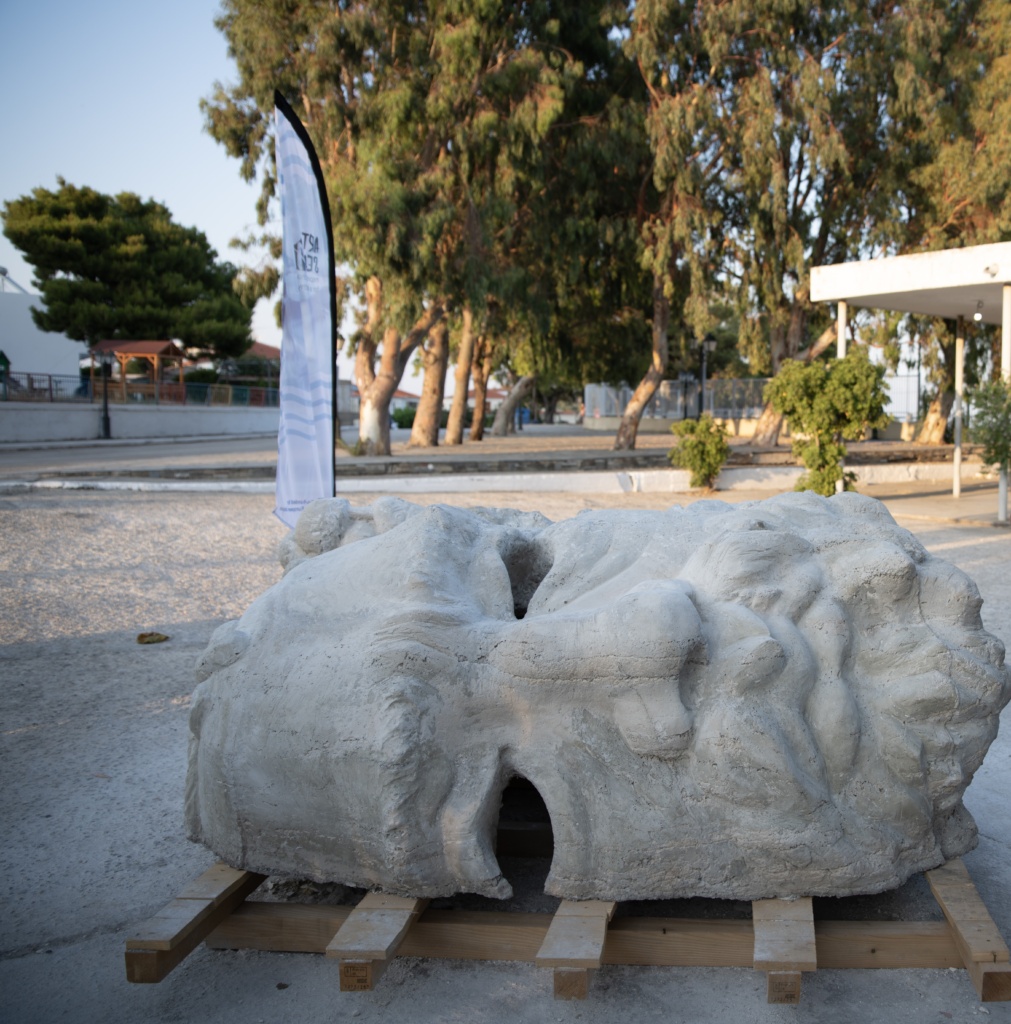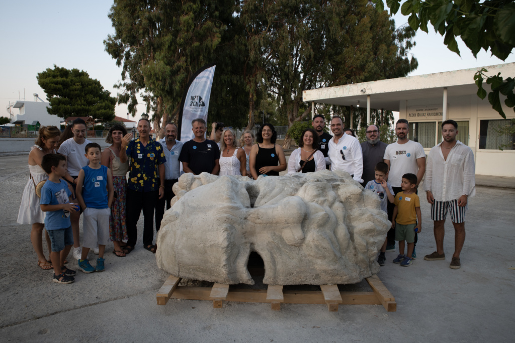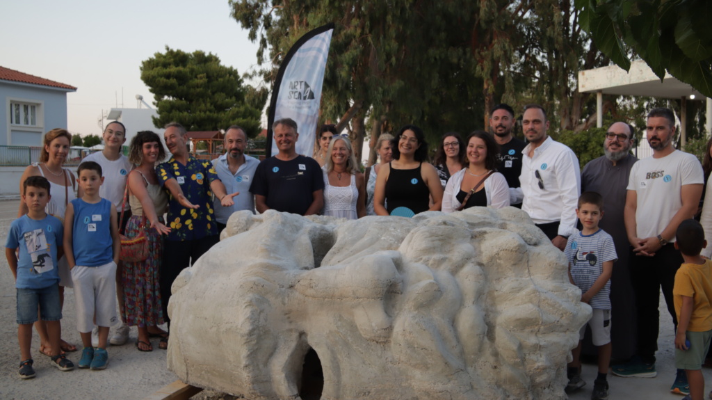 richness, the work merges classical iconography with contemporary waste. The embedded materials — symbols of both abundance and pollution — blur the line between relic and refuse. The result is a monument that questions what we discard and what we remember. Aetas becomes part of Alonissos’s underwater landscape, merging nature, myth, and memory in a space of reflection—where art echoes ecological urgency and timeless transformation. The ocean holds both our stories and our waste. Aetas reminds us that even what is lost or discarded can hold the seeds of renewal.