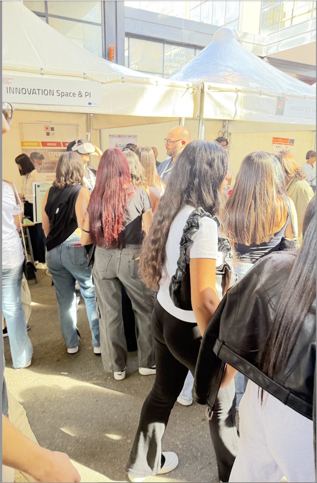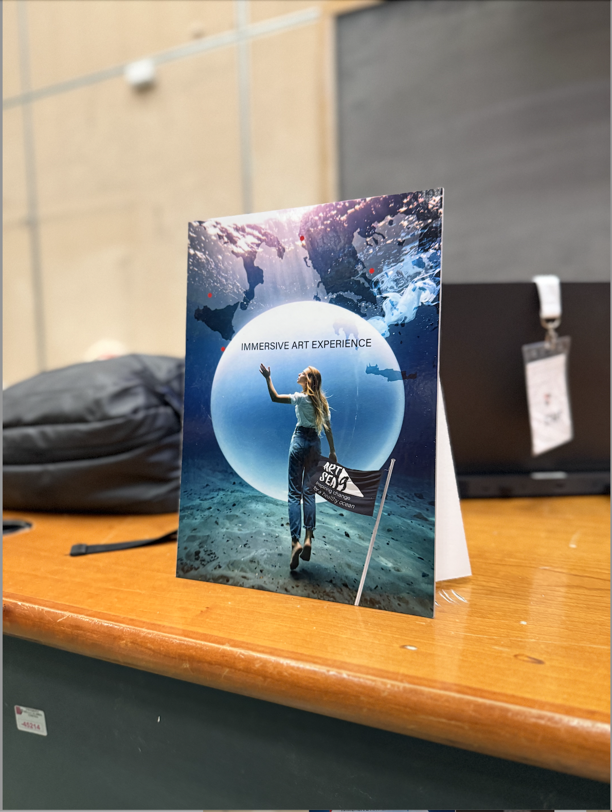 Within this vibrant setting, 3D Research engaged students in an immersive journey through Art4Sea’s results. Using MetaQuest headsets and a dedicated space in the Meta Horizon metaverse, visitors could explore the virtual exhibition, travel virtually to Gozo, Alonissos, and Ustica, and discover the artworks created by the resident artists. The experience was enriched by the screening of an awareness video on ocean health, produced together with the Institut de Ciències del Mar – CSIC.