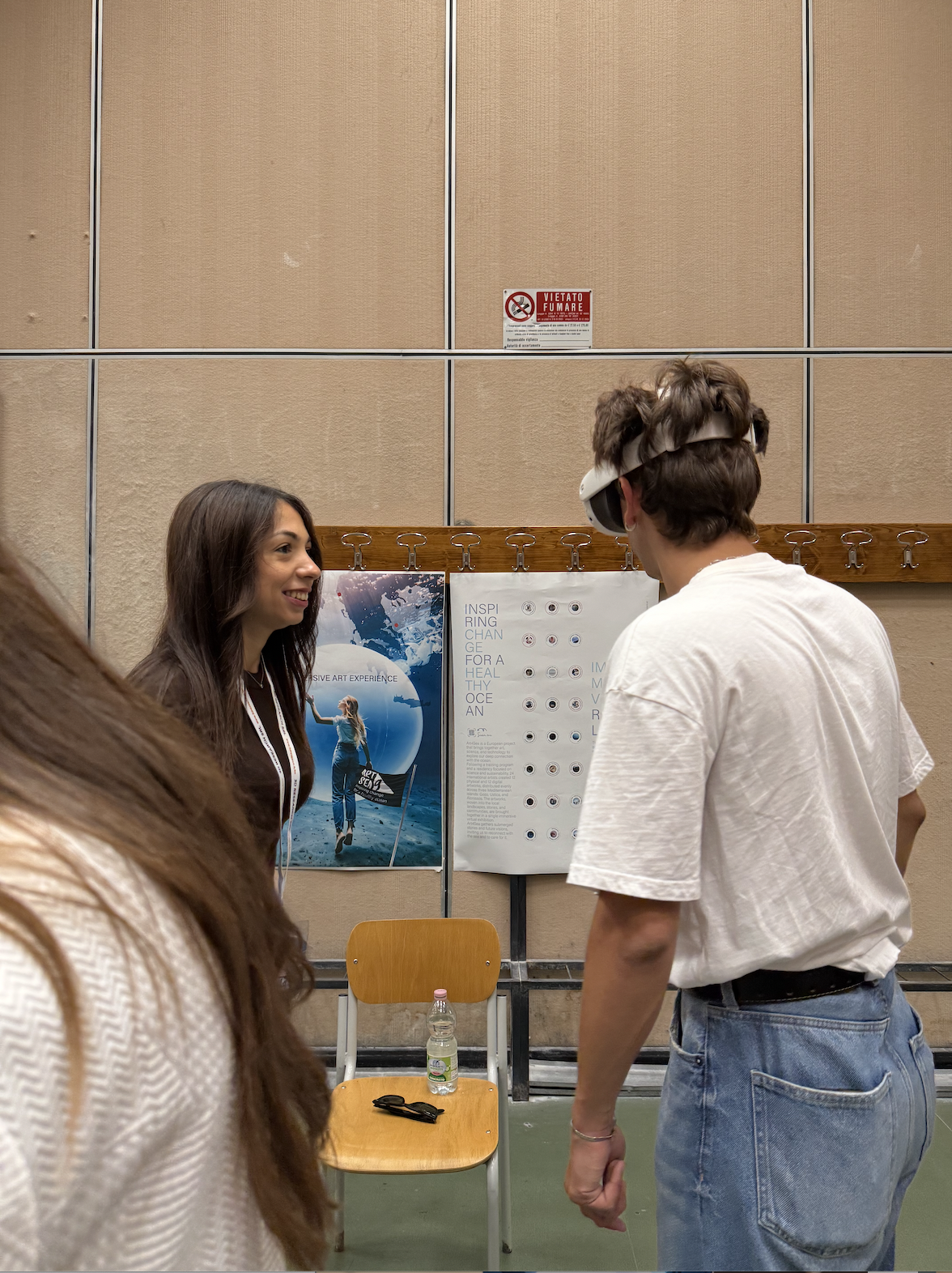 Two dissemination spaces were set up for the occasion: a reserved classroom in Unical’s iconic “cube buildings,” where students were guided through the different dimensions of the project, and a stand in the Innovation Space along the campus bridge, open to all visitors. Here, participants could freely dive into the VR exhibition and experience Art4Sea’s blend of art, science, and technology.Across both events, Art4Sea stood out as a project that not only produces artistic and cultural value, but also engages citizens, students, and communities in reflecting on the pressing issue of ocean sustainability.