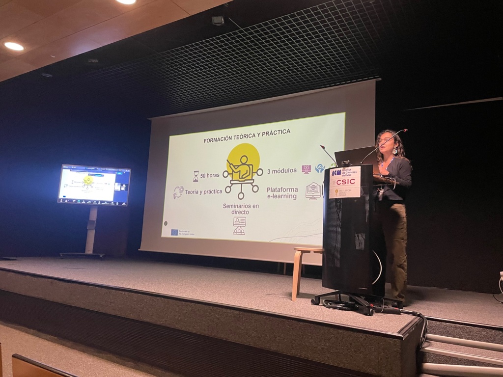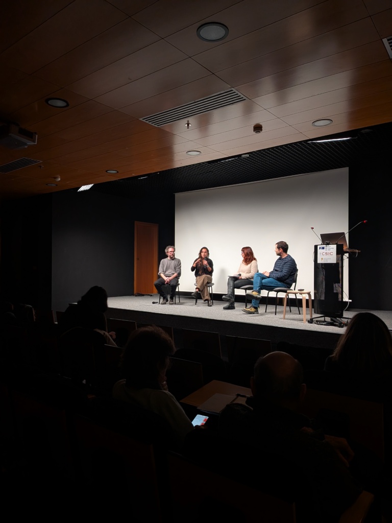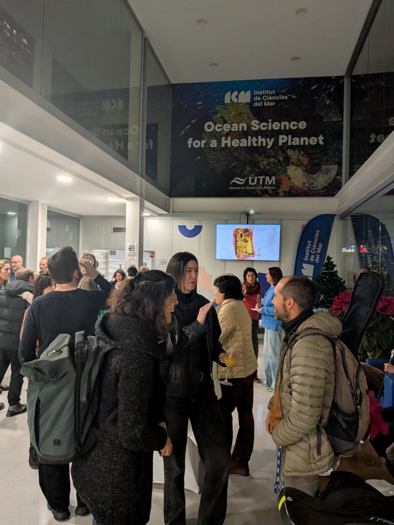 Highlights included a project overview by Paula López-Sendino (ICM-CSIC), a presentation by Carlos Izquierdo on his Ustica residency, and a round table discussion moderated by Elisabetta Broglio (ICM-CSIC) with contributions from Jordi Pagès (CEAB-CSIC), Macarena Marambio, and Carlos Izquierdo, plus questions to Lucio Tambuzzo (iWorld) and Vicky Drouga (Atlantis). The session continued with a presentation of works by three artists, each representing one of the islands involved in the project — Michal Trpák (Alonissos), Anne Fehres (Gozo), and Natalia Wilk (Ustica). Michal Trpák presented his piece in person, while the works of Anne Fehres and Natalia Wilk were shown via digital projections, allowing attendees to explore the diversity of Art4Sea’s island-based residencies. The programme concluded with a convivial gathering and the final Art4Sea video projection.